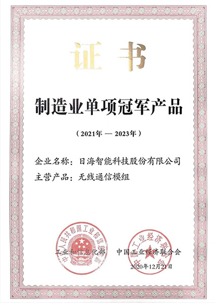近期,日海智能无线通讯模组产品荣获国家级制造业单项冠军!这项殊荣凝结着日海智能集团通信模组板块全体成员的智慧和努力,将无线通讯模组技术创新转化成为推动公司、社会高质量发展新动能。
